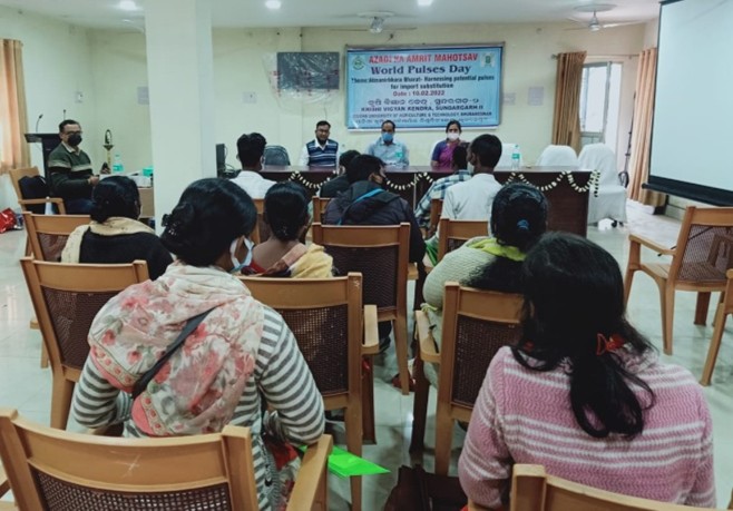 Village Khantang kudar is situated in the remote tribal pocket of Bisra block in Sundargarh district. People are mostly engaged in subsistence farming and daily wage earning. During the dry season they face food crisis due to poverty and are unable to purchase sufficient food materials for the family. So KVK, Sundargarh-II organized World Food Day in the village to sensitize about improved farming practices to raise their income level and also ensure food security. The tribal farmers were also advised to take allied activities such as floriculture, mushroom cultivation, nursery raising, poultry farming etc. as alternative source of income. People were motivated and the KVK team decided to help and guide them in all respect. Around 50 farmers/ farmwomen attended the meeting. To uplift the food security status and alternate source of income generation KVK has adopted the village under Tribal Sub Plan activity and had planned for homestead kitchen garden for each and every household. About 100 beneficiaries will be covered under this. It is expected that this will greatly benefit the poor tribals in getting nutritional security as well as surplus income to cater to their other domestic needs.